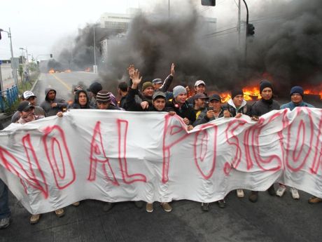 Moneda, en rechazo a la Ley de Pesca. Sin embargo, luego de de una