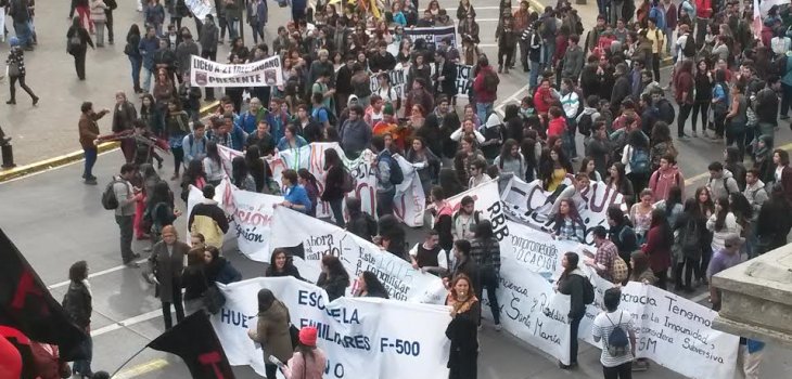 Desde temprano los profesores de toda la provincia se reunieron en la plaza Perú de Concepción para participar de una marcha que, con la suma de los estudiantes de las cuatro universidades tradicionales de la zona, tomó carácter de masiva.